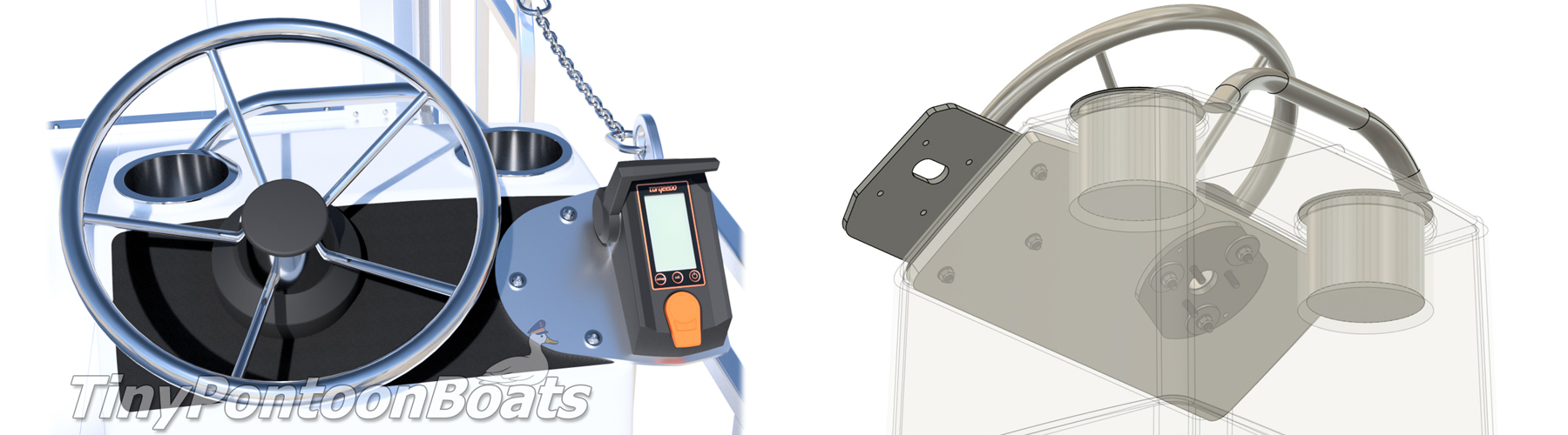 These instructions cover the common remote throttles/shifters for Torqeedo and ePropulsion electric outboard motors. However, for the sake of simplicity, we are working with Torqeedo's most common current throttle, being their "Torqlink" throttle, part number 1976-00. The only difference between mounting these throttle assemblies and others available is the nuts and bolts that fasten the throttle itself to the aluminum mounting plate. If installing a throttle other than Torqeedo part number 1976-00, you may require different tools for fastening the throttle itself. Please contact us if you have questions about this. Please be aware that we DO NOT cover installing the control cable itself through the plastic steering console shell. We recommend a hole be drilled and a grommet be installed to insert the cable into the side of the steering console shell. Please contact us for details on this.