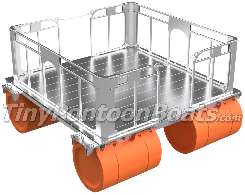 Our 8'x9' mini work barge uses our 27" wide floats, provides a bit more weight capacity, and is only a little bit larger than the next size down. If you have heavy equipment that needs to get out on the water, but still compact design, this blunk pontoon work platform gets the job done.