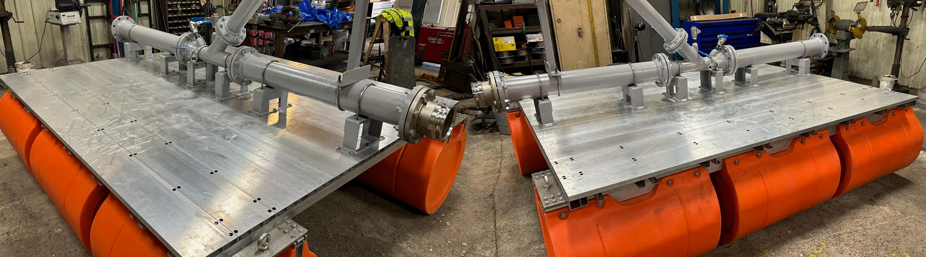 $5360 FOR FRAME & FLOATS $7545 WITH DECKING Our 8'x8' blunt work platform uses our 27" wide floats and offers a lot of capacity for the footprint. We have many customers who mount water pumps and test equipment to this style raft, but they're also a great choice for getting into tight areas if doing repair or maintenance work.